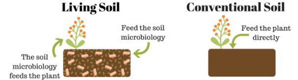 · ดิน High BRIX – ดินผสมผงแร่และมีความหวานเป็นเอกลักษณ์ ให้ธาตุอาหารโดยเอาจุลินทรีย์ไปย่อยสลายแร่ในดิน เพื่อปลดปล่อยธาตุอาหารโดยสามารถใช้งานได้เป็นเวลาหลายเดือนถึงเป็นปี แต่ยังต้องการการให้อาหารทั้งทางดินและทางใบ โดยทั่วไปจะทำดินเป็นสูตรเพื่อพืชแต่ละชนิดจำเพาะเจาะจง เหมาะกับการปลูกเอ้าท์ดอร์ หรือ ระบบเปิดมากกว่าเนื่องจากจะต้องมีการเตรียมดินล่วงหน้าหลายเดือน ส่วนสำหรับการปลูกพืชในบ้าน อินดอร์ หรือ ระบบปิด คงไม่ได้จำเป็นเนื่องจากระยะเวลาในการปลูกสั้นแค่ไม่กี่เดือน กว่าจะสร้างอาณาจักรจุลินทรีย์และย่อยธาตุคงไม่ทันกิน
