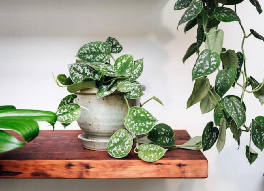 Scindapsus pictus ที่มีความด่างในรูปแบบ blister variegation