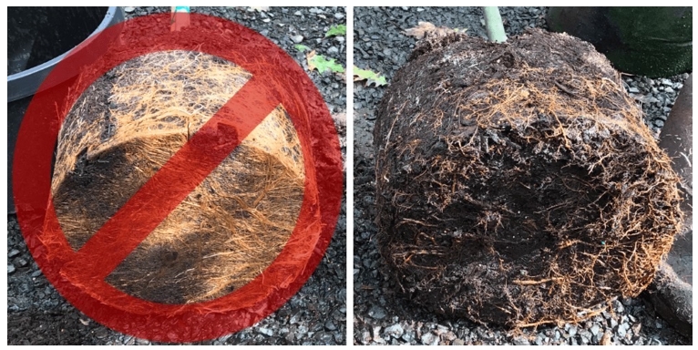 โดยธรรมชาติแล้ว รากของต้นจะเติบโตเลื้อยไปในทิศทางไหนก็ได้ที่มันชอบ แต่พอเรานำพืชมาปลูกในกระถาง พื้นที่สำหรับการเติบของต้นไม้จะถูกจำกัดเอาไว้ ก็เพราะเหตุนี้จึงทำให้รากโตเรื่อย ไม่มีการหยุดโต หยุดเลื้อย เราจึงได้เห็นรากต้นไม้ เลื้อยเป็นแพอยู่รอบพื้นผิวที่มีรูปร่างเหมือนกับกระถางที่มันอยู่ แต่ภายในแทบไม่มีรากเลย